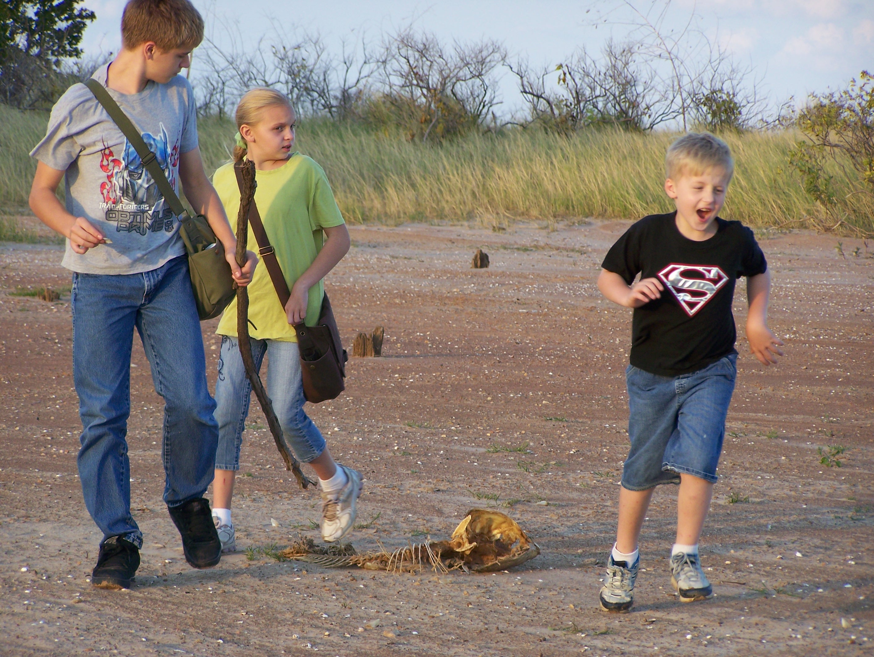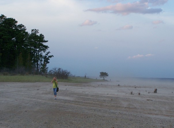 Once we got out to the open point of the beach, the wind started to pick up and blew the sand across the beach. This mini dust storm was the one thing we will remember the most. The way the sand moved reminded me of the cartoon Prince of Egypt—the plague of the death of the firstborn. The way that the sand slinked and weaved in and around each bush and grass clump, how it slithered along the ground, was almost supernatural. It was a great experience for the kids because the week before, we had learned about the 1930s Dust Bowl, the great dust storms that happened so long ago in the U.S. As bad as this little sand disturbance was, the kids could only imagine the magnitude of what a real sandstorm must have been like. Anna wandered too far ahead and had to turn back, facing the storm head-on. She literally had the sand and wind in her face, which gave her a new perspective on what a sandstorm, even a low-scale one, was like.