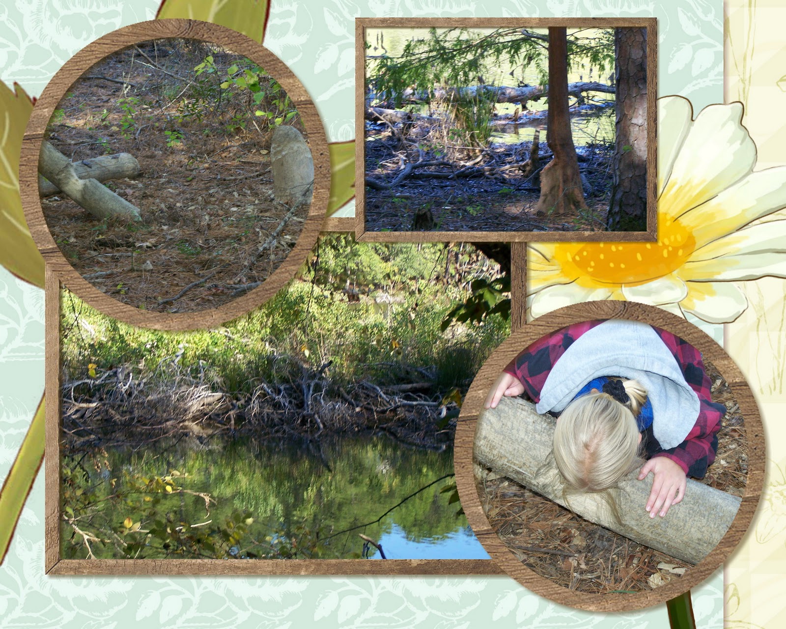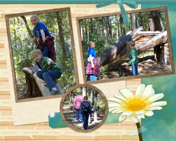 Those crazy kids of mine are photo hogs I swear. They found a fallen tree and “Boom!” up they go “surfing.” “Mom take a picture!” We look at a few more trees, “Looks like a Tornado must have come through here.” I decide. I point out how the tree was twisted and broken, not just fallen over. We hurry to catch up with Austin and Stewart, who has started leading the way.