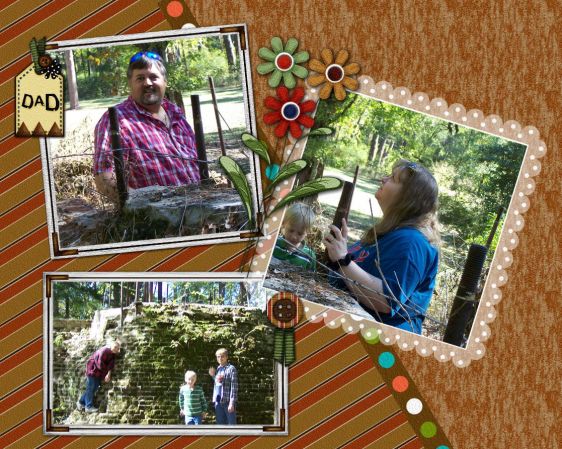 Austin hangs from the lantern hook and climbs a tree, probably showing out in front of his cousins. “B” picks up some of the Magnolia seeds to take home.