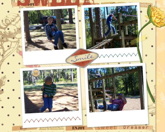 Austin sat and enjoyed the swing, he is such a calm natured child. Anna, on the other hand, was running wide open on the playground equipment. I would not have believed she was sick about a half hour ago had I not been there myself. Adam jumped in the kiddie swing so he could “buckle up”, Lord only knows what he was playing in his mind. Stewart even gave the swings a “go,” getting in touch with his inner child I guess.