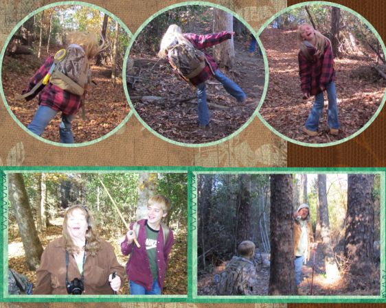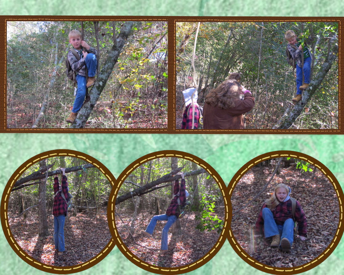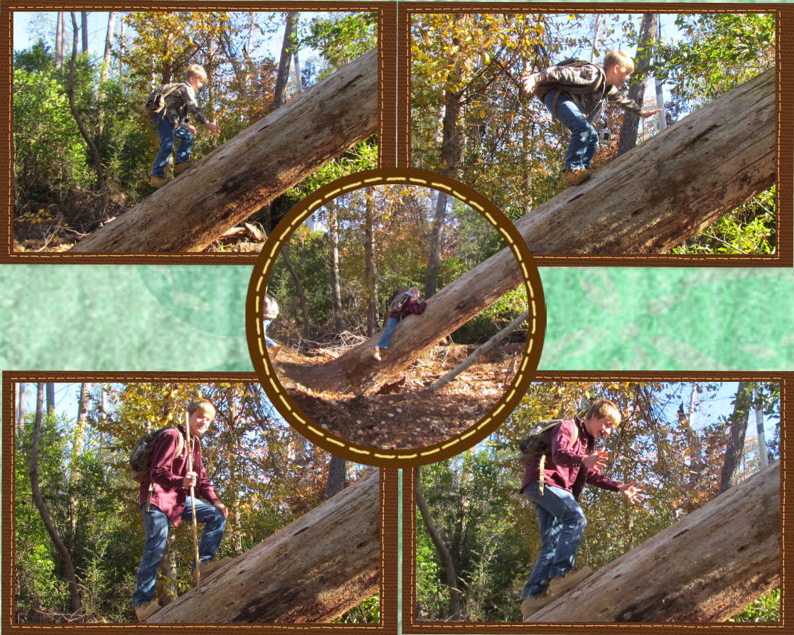 We found a tree that must have been blown down when Hurricane Rita came through the area. All the kids had to take a turn at walking up it. Adam made it the farthest and had to show off with his “surfer dude” stance, but on his way down he slipped and fell. Like his sister, only his pride felt the pain.