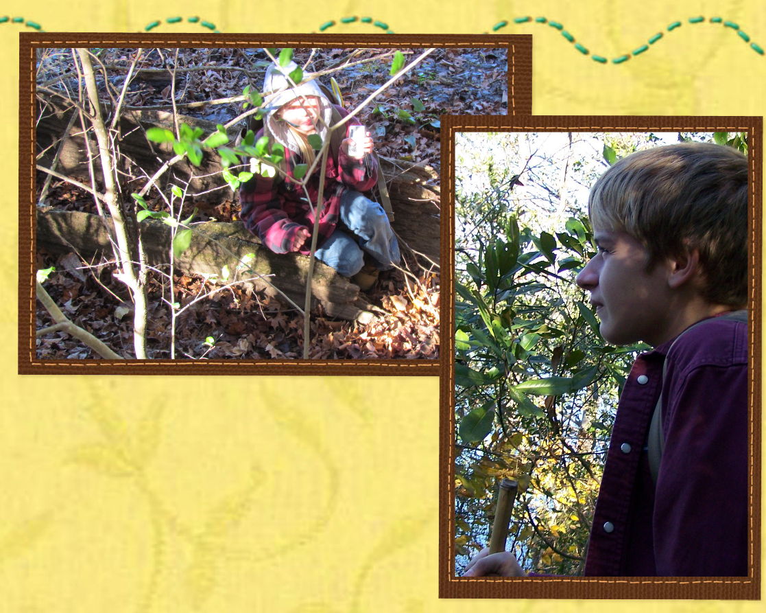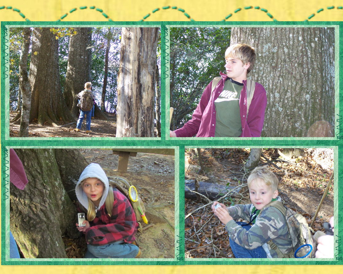 Adam picked up a Sweet-Gum ball. I said, “A porcupine egg!!” He didn’t fall for it. It was much more fun when they were little to pick on them, now they are just too smart. Austin wore his compass ring, but we soon figured out it was not all that accurate, good thing I carry the map of the park “religiously” since the Kirby hike.