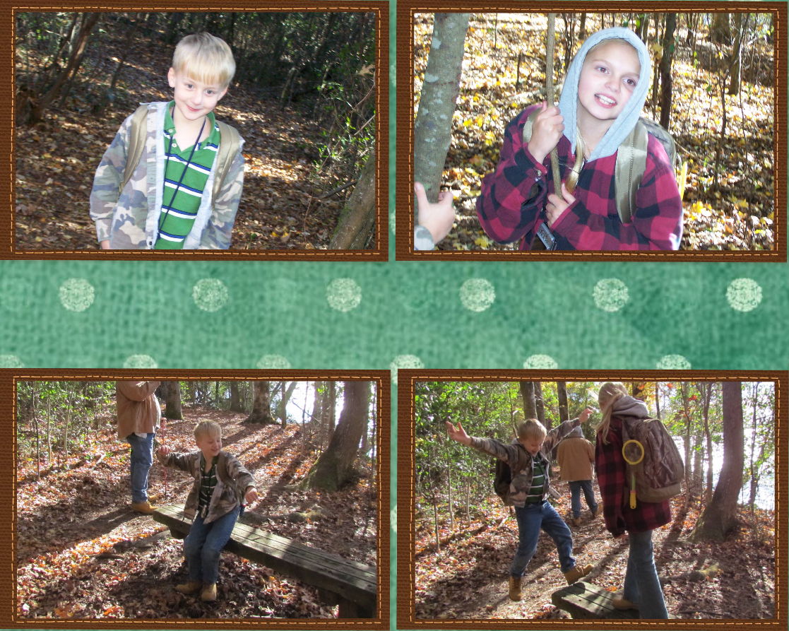 Anna did this crazy little walk. I am not sure what she was playing but I am certain it all made sense in her mind and she thought she was quite funny, so did I. (No Austin was not going to whack me with his walking stick, he was just propping it on his shoulder.)