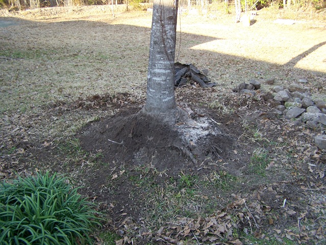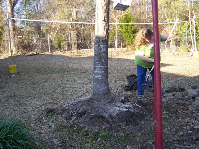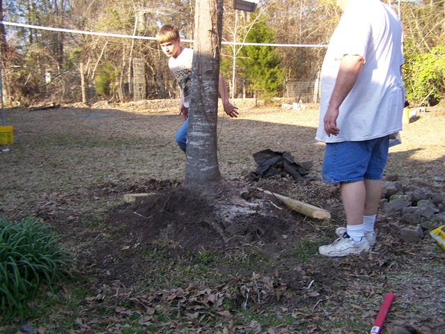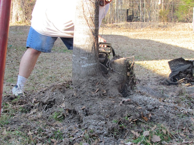 Stewart pulled out the chain saw and cut off the stump we had tried to hide so long ago. “You know, oak is a lot harder to cut than pine!” he protested.