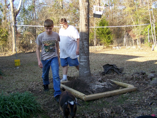 I grab the rake and get all the leaves and sticks pulled away from our work area.