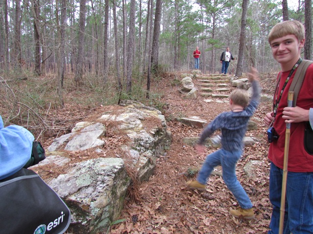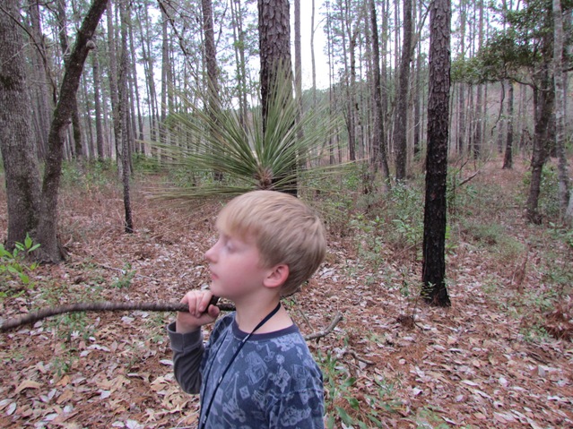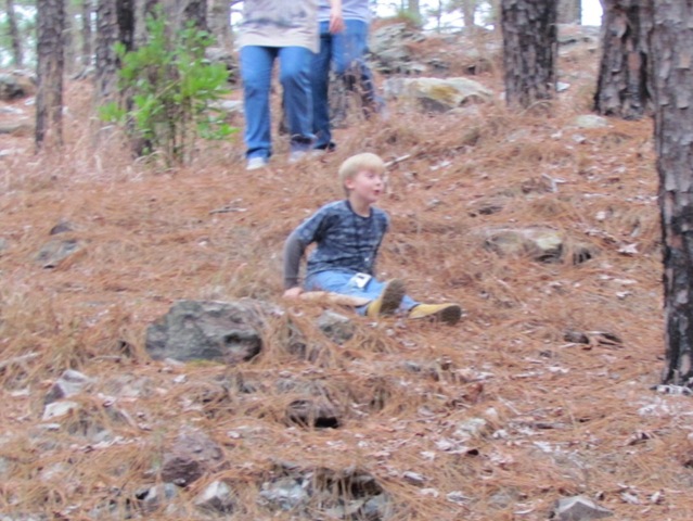 Adam scooted all the way down the hill to clear the pine straw so it wouldn’t be slippery for his aunt to walk up. At least that is what he told us, I think he just wanted to play bulldozer down the side of the hill.