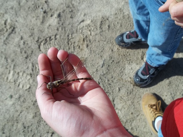 Austin found a damselfly that had broken wings so the kids looked him over and placed him in the high grass for safety. We have learned the difference in a damselfly and a dragonfly is the position of it’s wings.