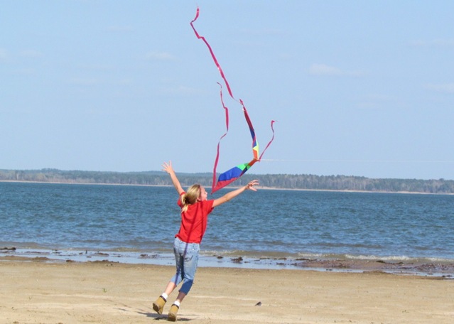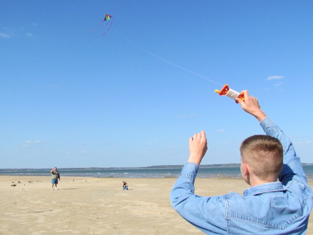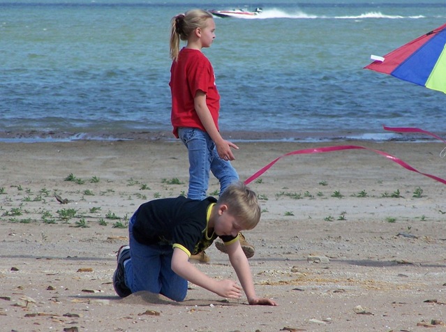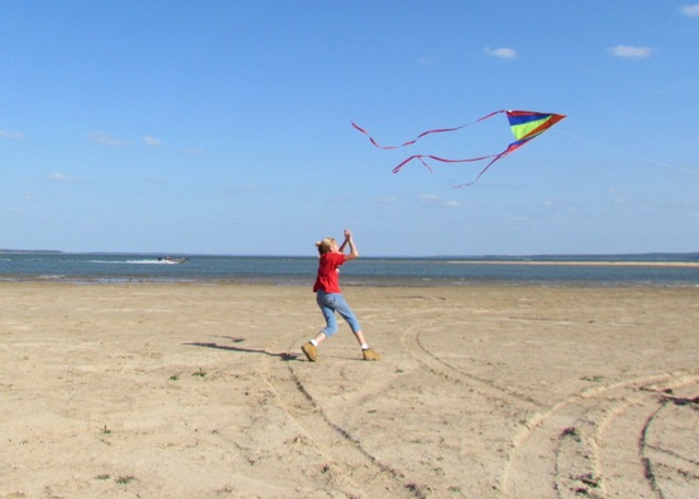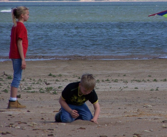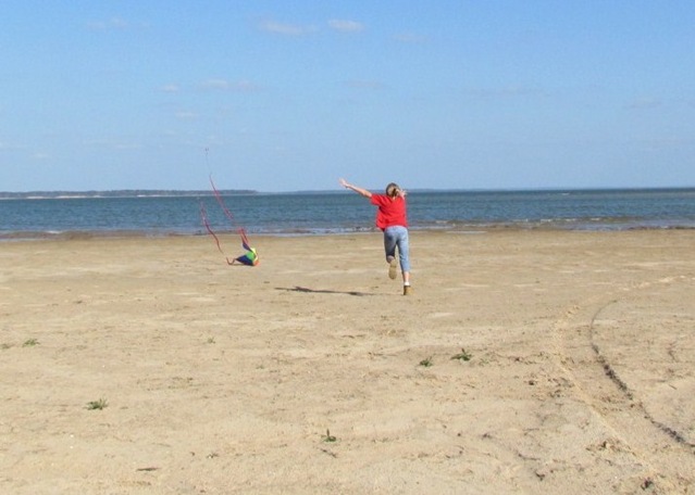 Anna ran all over the beach while Austin was flying the kite hollering “Crash it , Crash it!”