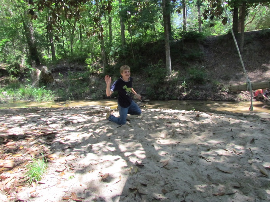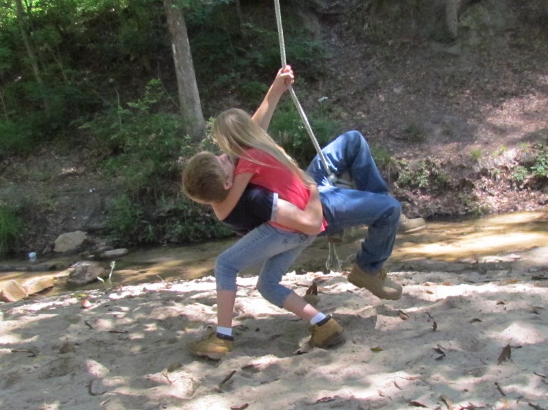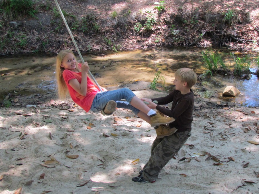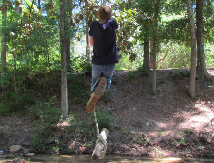Stewart would pull them way back then let them go so that they would swing high out over the stream. They absolutely loved it.