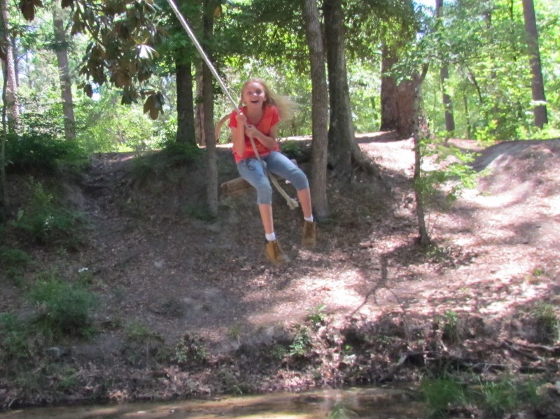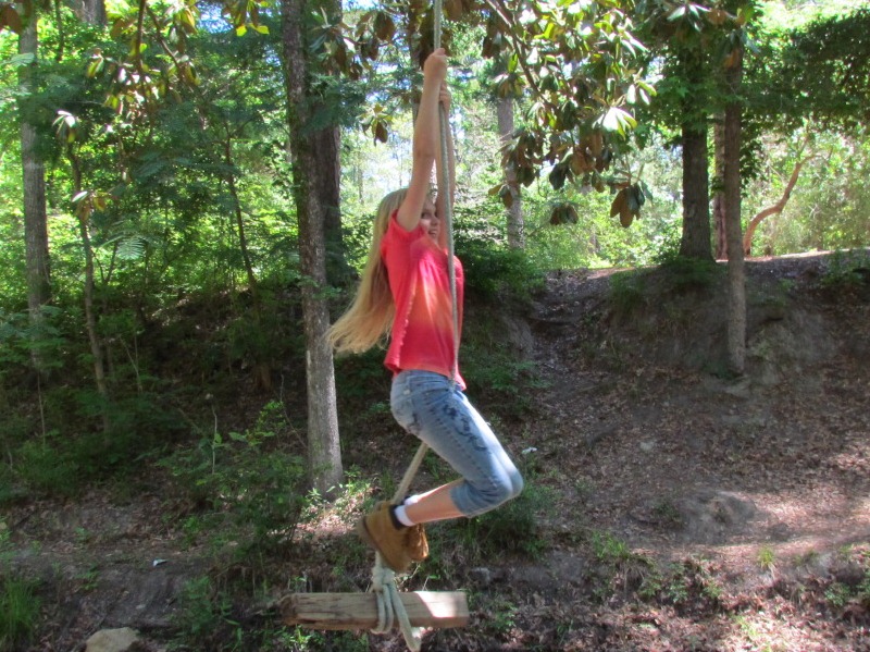 Anna would grab the rope and jump on the timber to “mount” the swing. She looked like a frog so of course we had a good laugh.