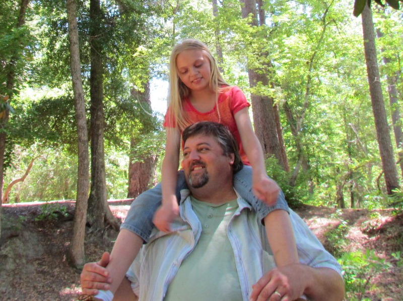 Of course when “someone” wouldn’t get off so “someone else” could have a turn, baby girl took him down. Adam took full advantage of the moment to sneak over and get his turn.