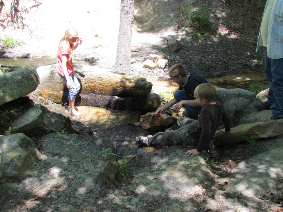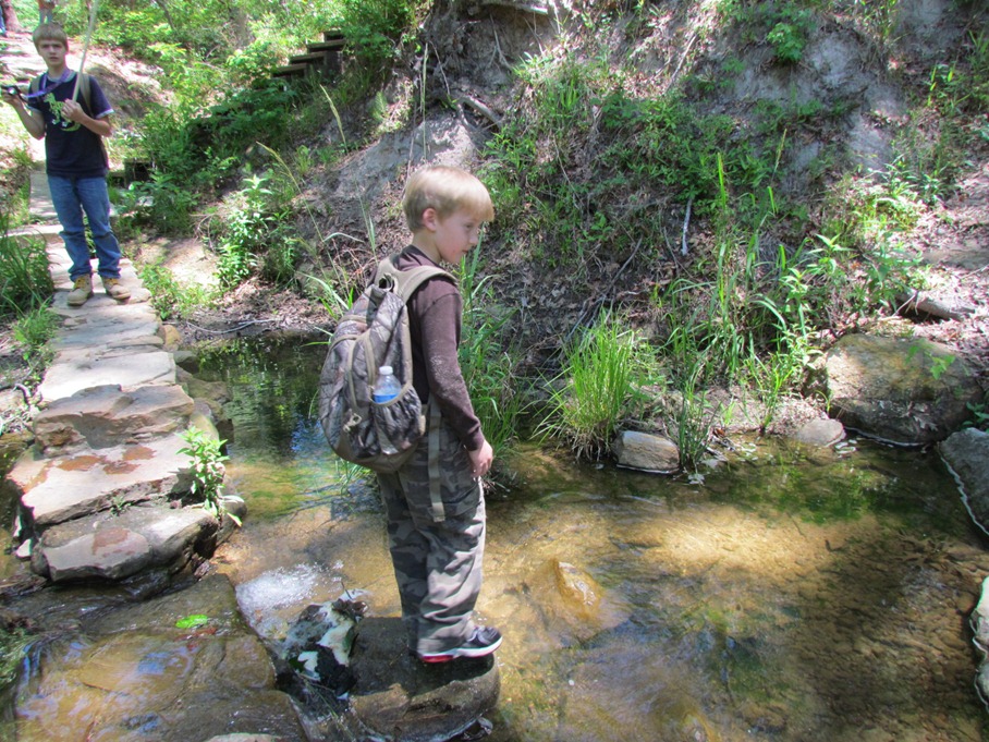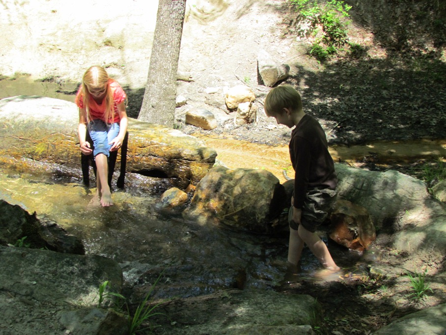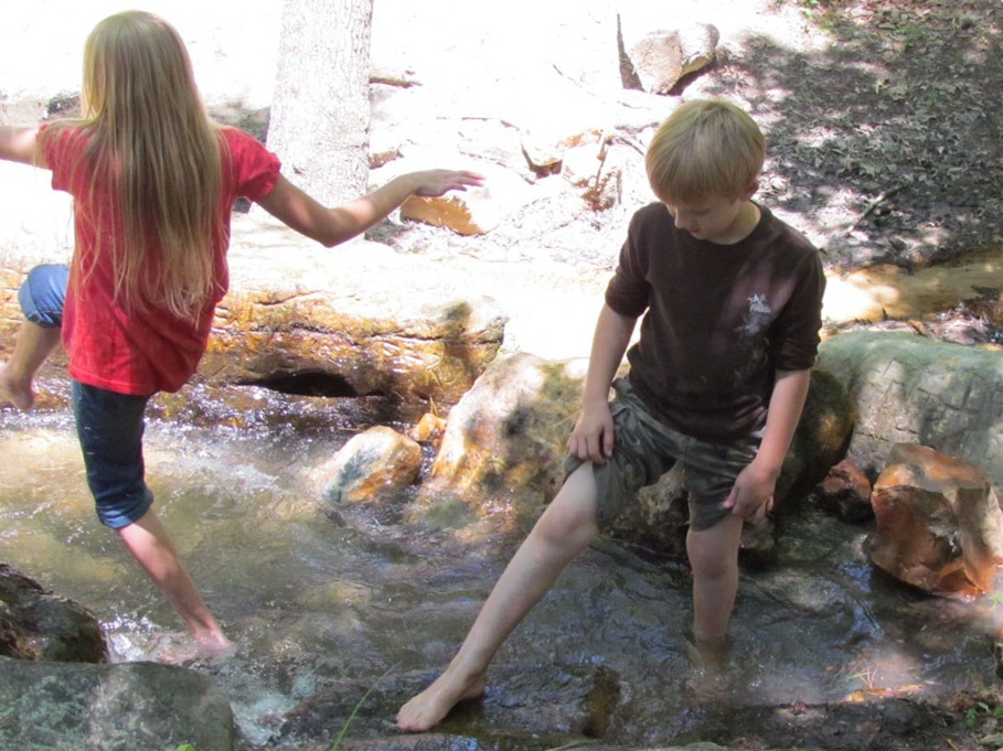 Adam decided that looked like fun so off came his shoes and with pant legs rolled up, he carefully braved the cold water.