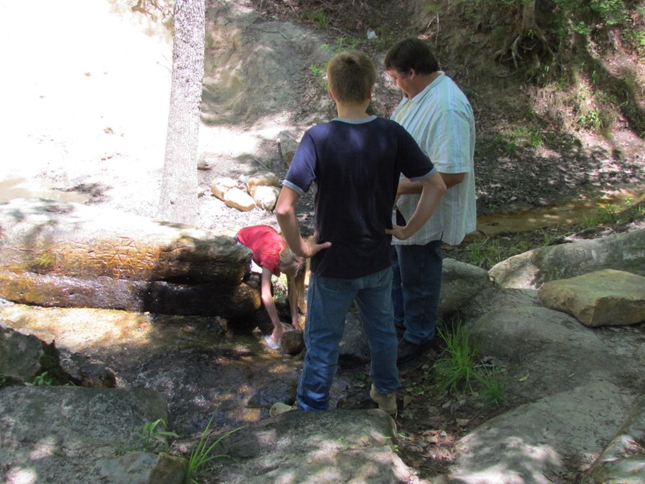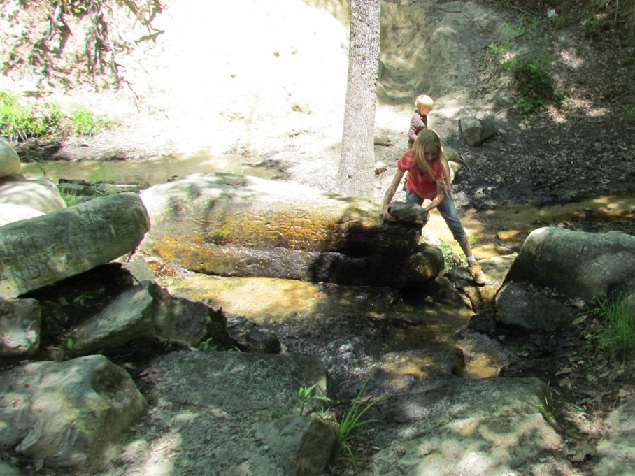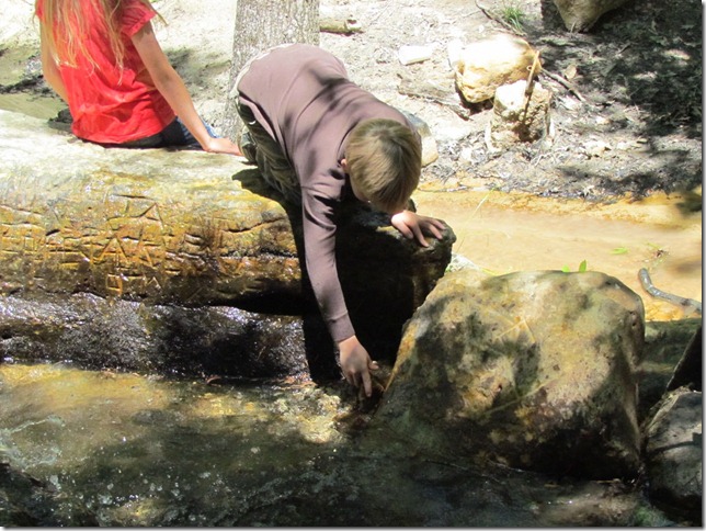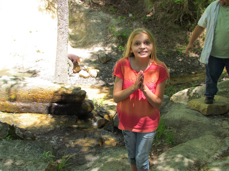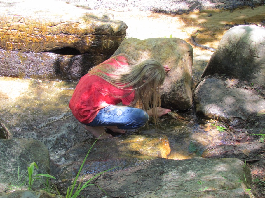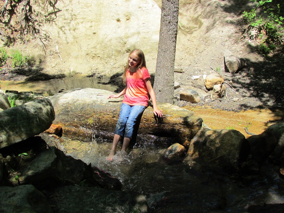 When we arrived to where the spring water comes out of the rock, Stewart jokingly said to Anna, “This could be your bath tub!” So immediately she got to work to “make” a tub out of the rocks.
