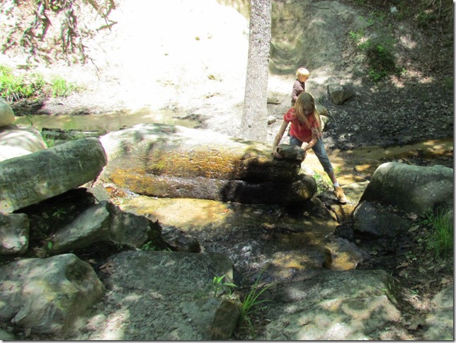 We crossed the rock walkway over the stream taking a minute to look at the mini water falls and being careful of the shifting rocks.