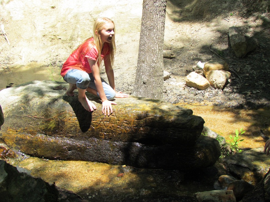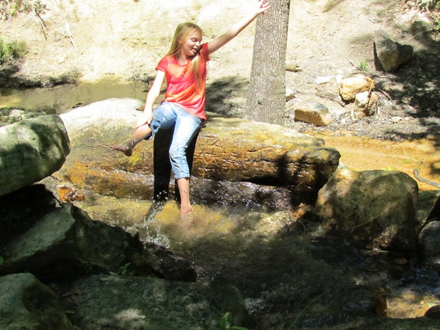I swear Anna lives in a musical, she is always doing some little song and dance while playing. Adam had to test the rock to see how slippery it was since Anna slipped on it.