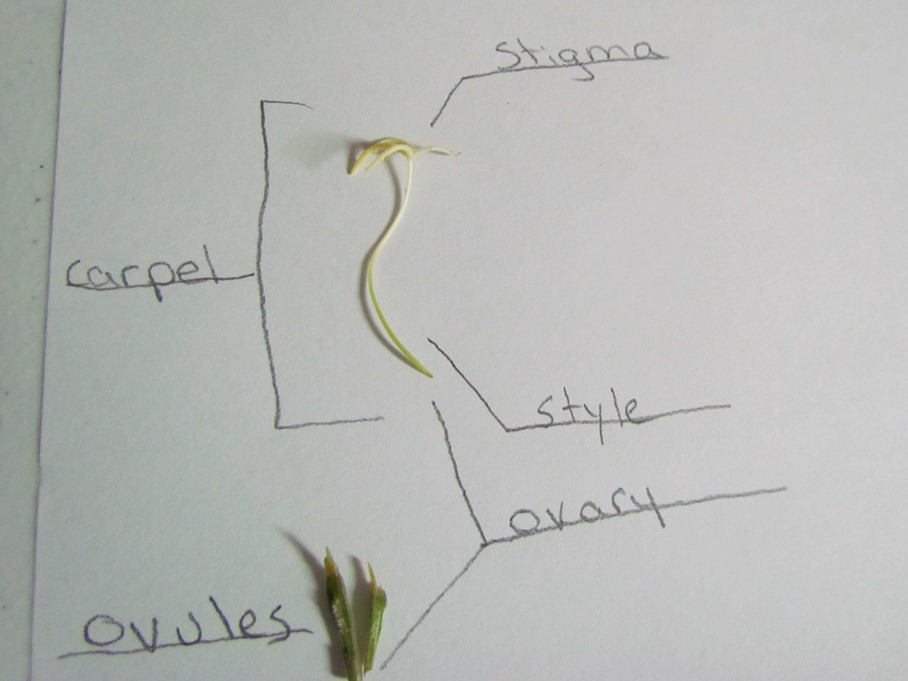 First we took off the calyx (the group of sepals all together) and labeled the parts.