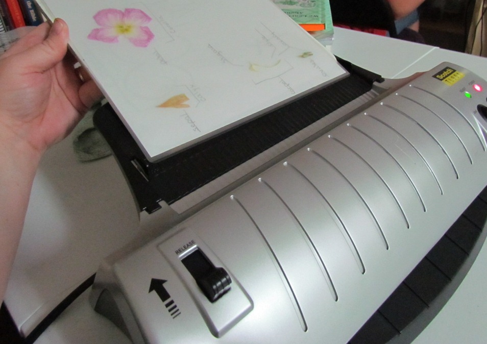 I had a bright idea and decided to laminate our project, which worked out pretty good but some of the flower parts had a lot of moisture and squished when going through the machine and left a little flower juice mark on the page but it still turned out great and now we can use them to discuss further lessons without the worry of them falling apart.
