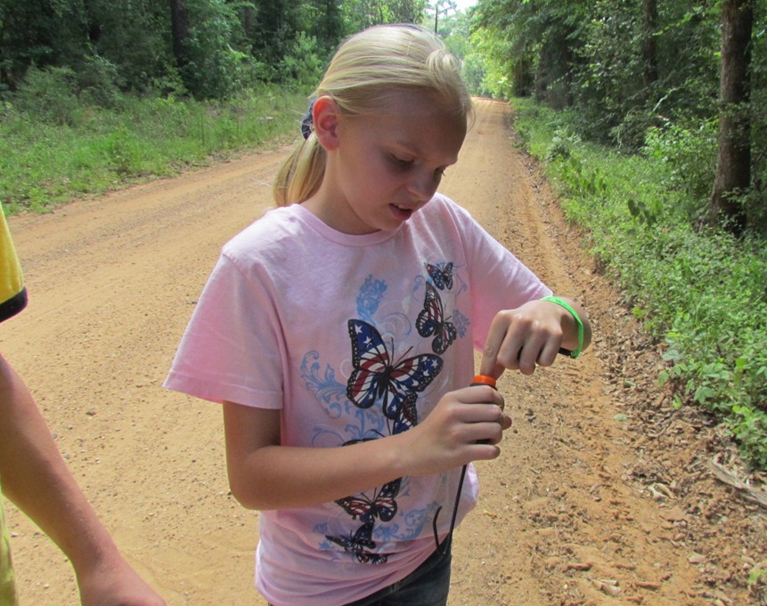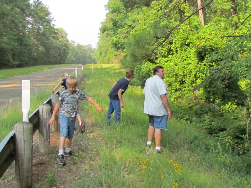 These people are referred to as “Muggles” by most geocachers, apparently it is a term from a movie I have never watched. Frankly, we call them “Muggles” and sometimes we go as far as to call them “thuggy smuggley muggles” although after reading about the term “Muggles” and which movie it came from, I think I will just start calling them “Cache Bandits.” The kids like to act all dramatic, so anytime we see a car coming we all are supposed to “act natural” so they don’t see the cache and rob or destroy it. When a car approaches they scurry about trying to find something to look natural doing on the side of the road. I am sure it is totally natural for a 10 years old girl to be “checking the tires!”