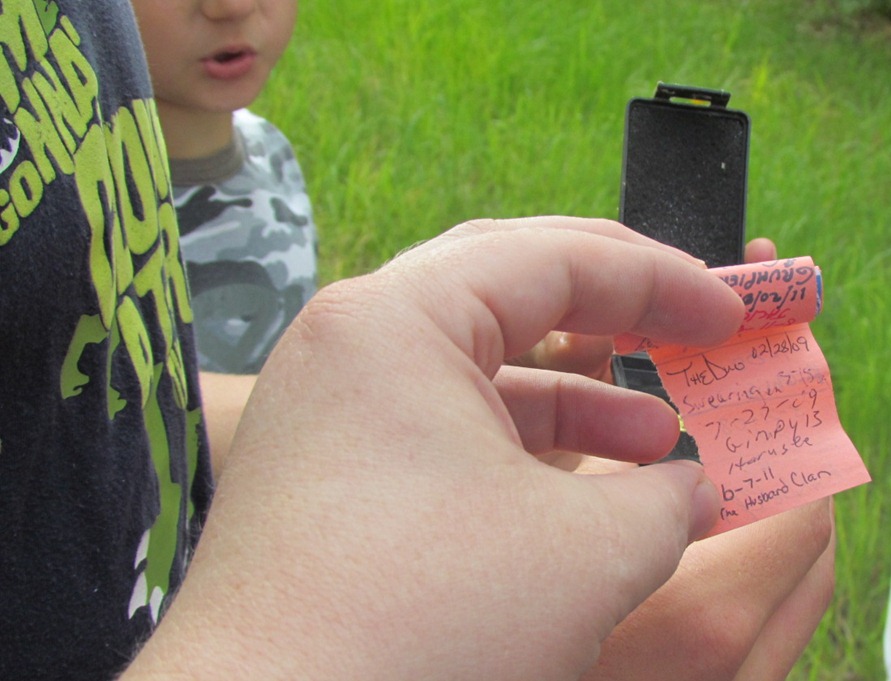 Another job of mine is to sign the log books (sorry for the sloppy handwriting fellow “cachers”, it is hard to write neatly on an iPhone screen).