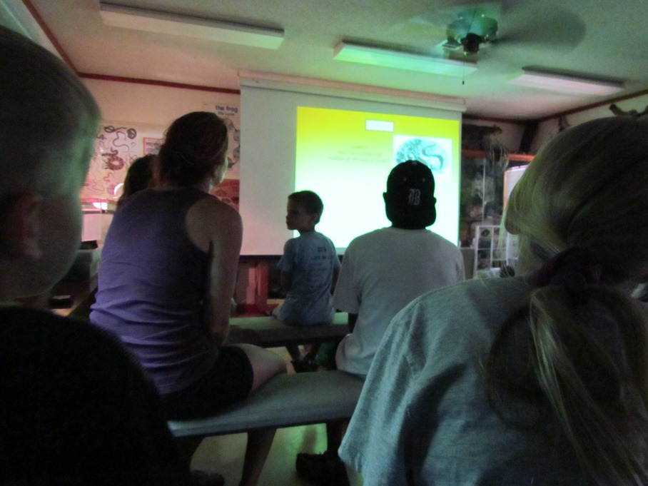 More people begin to arrive and we all took a seat in the classroom and watched a slide show about venomous snakes and how to tell them from non-venomous snakes. There was a lot that even Stewart and I learned about the different snakes.