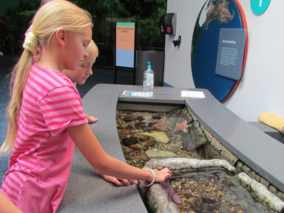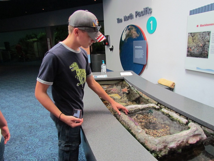 The kids pet a Sea Star (aka Starfish.) The lady there said that they try to educate the public to call them Sea Stars because they are not a fish at all! (learning moment!)
