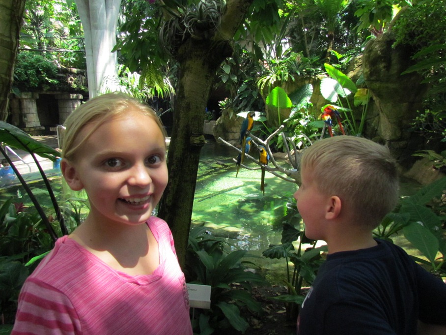 Our favorite part was the parrots that would talk to us. Anna swore, “Mom! It said my name!” They did say hello and goodbye very well and some other things that we think they said but it was really neat to be able to play with them vocally.
