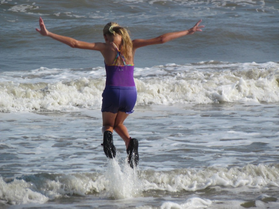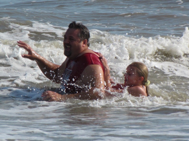 Finally in the water! Anna is jumping waves! With Tropical Storm Lee out in the Gulf we were getting some nice waves!