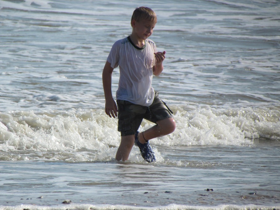 After no luck finding sand dollars, Stewart decided to hit the water too!