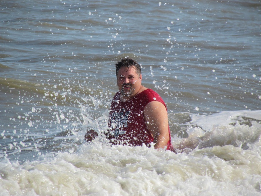 The kids wanted to go swimming in the ocean before we left so we went to Galveston State Park. We got our permit with our park pass and went to look for a place to go that we could drive our car to the beach. The park apparently does not allow that. I am glad with the yearly fee of buying a park pass we didn’t waste money on this park because we were greatly disappointed. After changing in their changing rooms, we all loaded back up in the car. We decided to just go back to High Island where my father-in-law has his beach house and swim there, at least we would be close to the beach and have a hose to rinse off with when we were done.