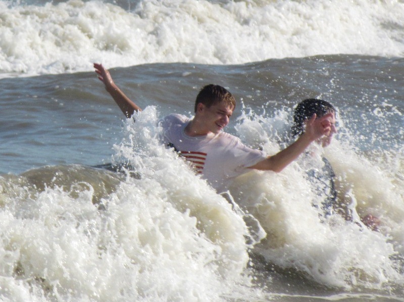 Austin & ‘B’ were having a blast battling the waves as they crashed against them.