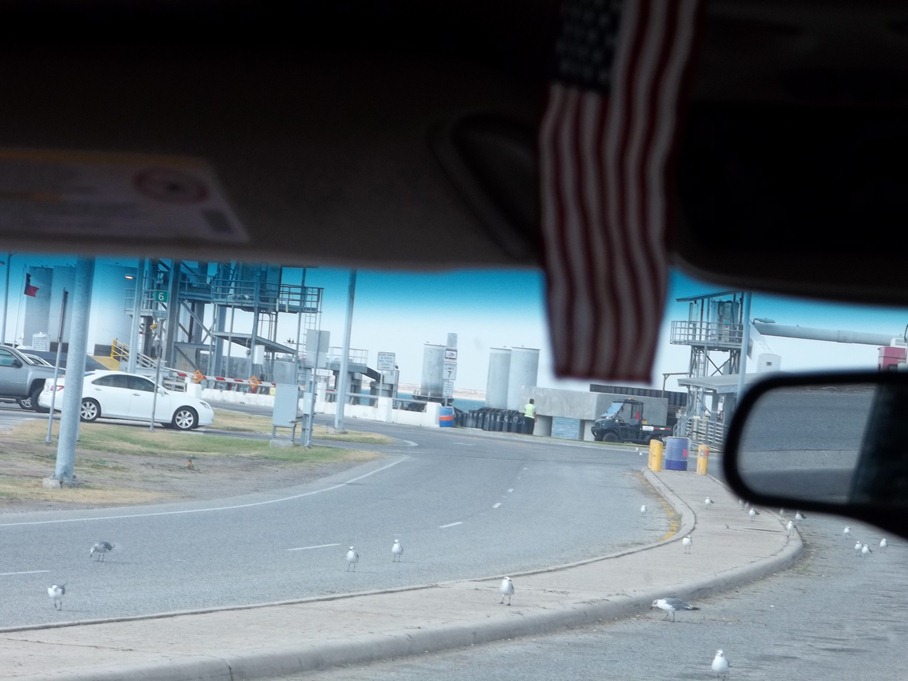 While we were waiting to board the ferry (along with all the other cars) we started messing with the seagulls that were nearby. We tossed a crumb of a pop tart we had, out the window to a lone seagull that was wandering by. Unfortunately we forgot about the fact that seagulls hunt in packs so in a matter of seconds we had a flock of seagulls swarming our car. I am sure the man ahead of us who had just got out of his car for a quick smoke sure did not appreciate that very much…oops!