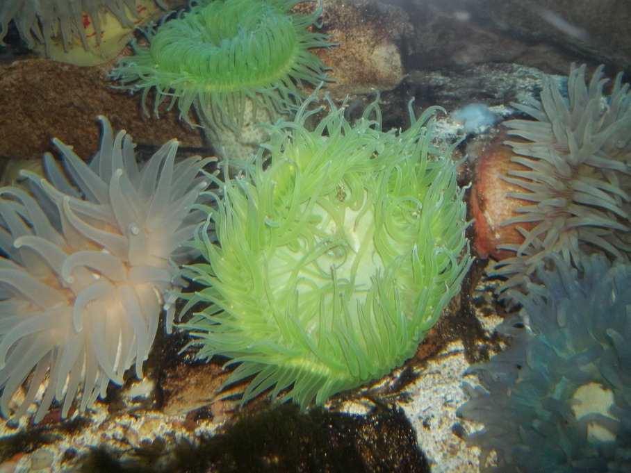 There are several tanks along the walls of the hallways with different things in them. The sea anemone are really pretty.