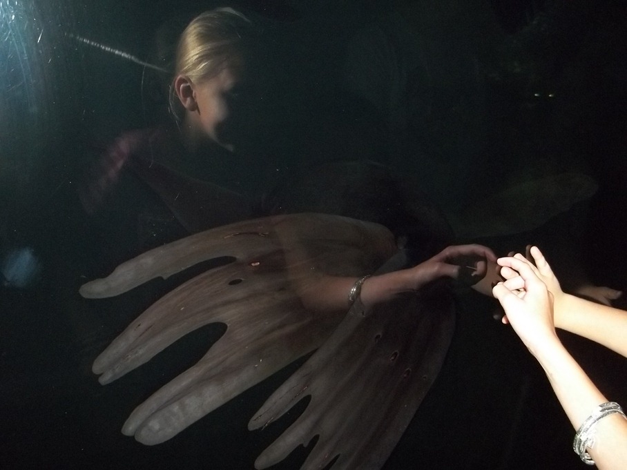 One of the coolest places in the Aquarium is the tunnel. Sharks swim right over your head, it is an awesome thing to just sit there and be engulfed in the underwater world for a moment.