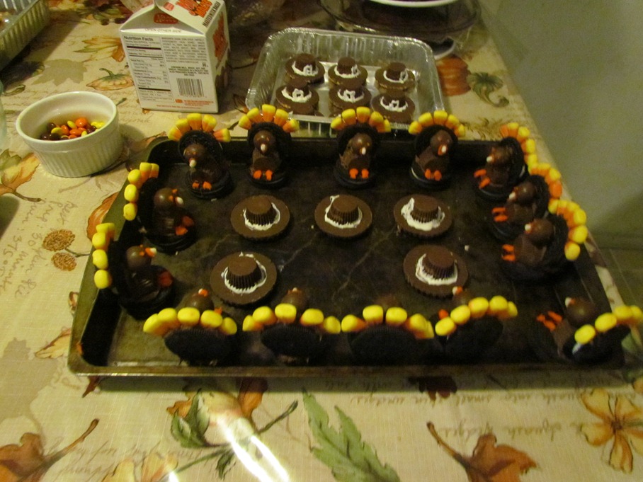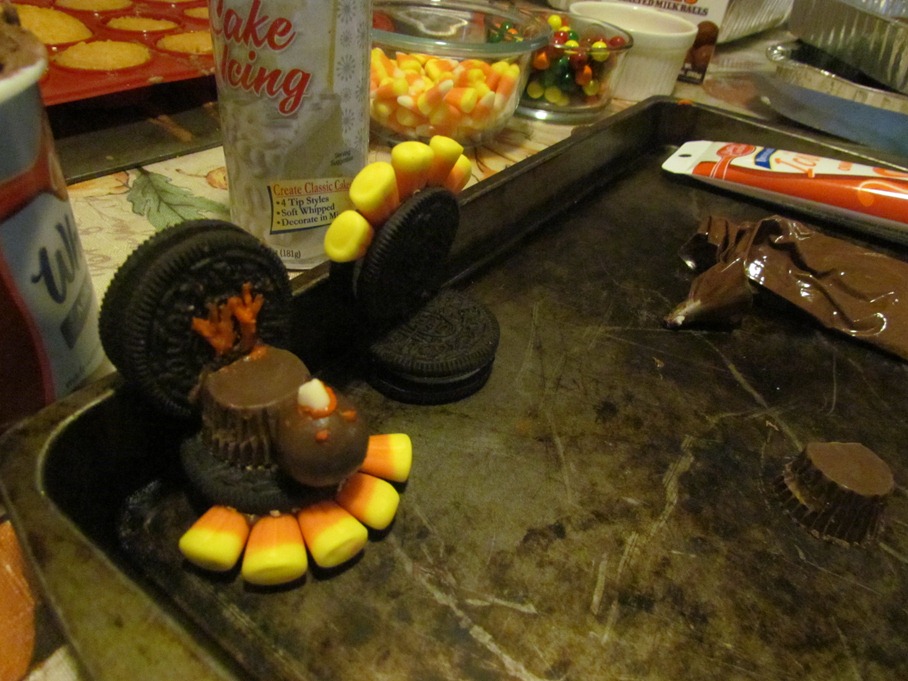 The Turkey was by far the most challenging. It involved Oreos that wouldn’t stay put and turkey whopper heads that kept rolling. Candy corn beaks that drooped. I tried to prop them one way , then the other. Some turkeys ended up looking like that had been through the wringer, but in the end they still turned out pretty cute.