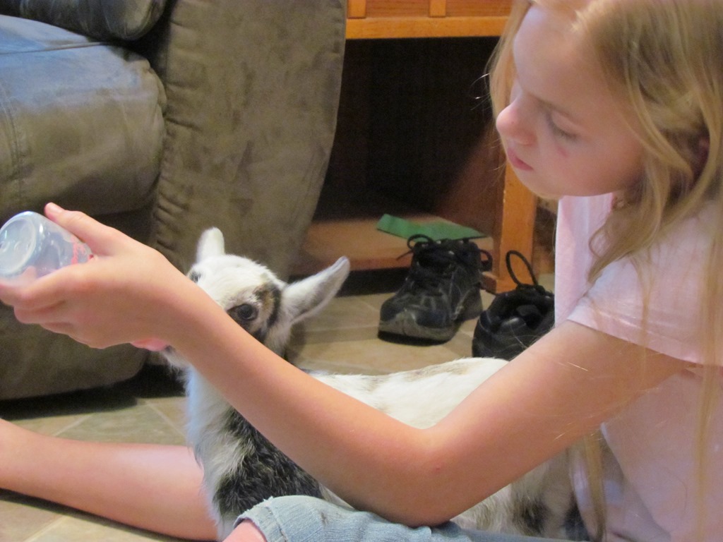 We had been without goats since our last one was killed by our donkey (who now lives elsewhere.) We decided to buy a pair from a homeschool lady we know. These little babies had to be bottle fed but we wanted that because if you bottle feed them then they are much more tame, they think you are momma!