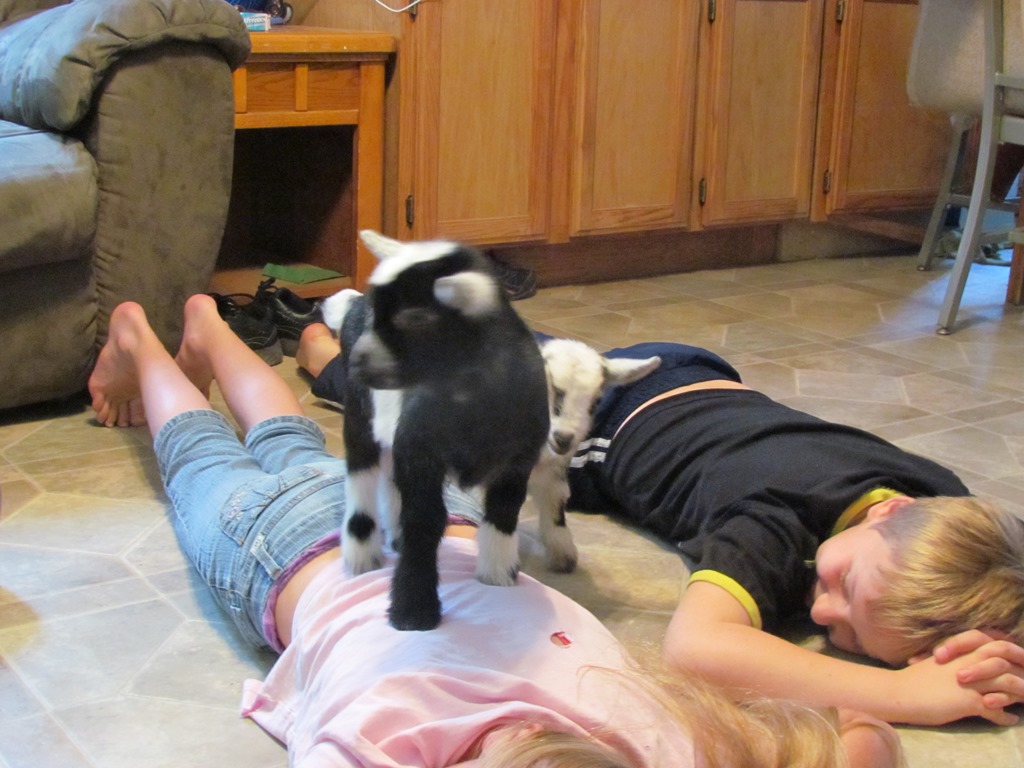 The “people” kids would lay down on their tummies and the “goat“ kids loved to jump on their backs and romp around.
