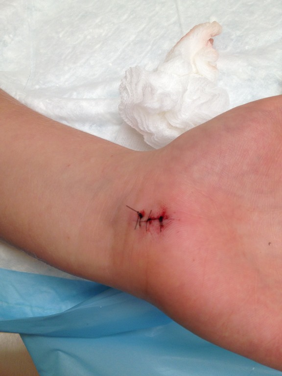 Adam had Stitches almost too Close to that Vein (happened opening his bow using knife)