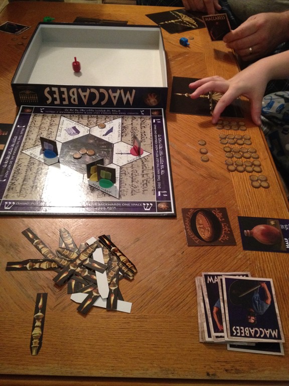 ”Maccabees The Game”, Hiking, Block Menorahs AG made, and I was too sick to go to the Bethlehem reenactment so AG brought it to me!