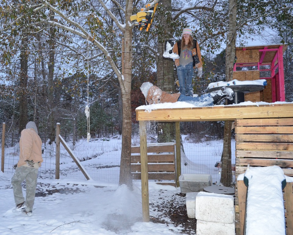 We had a few real winter “snow days” here in Texas (very unusual) so we had to stop construction, but the kids didn’t complain, they were having to much fun in the snow!