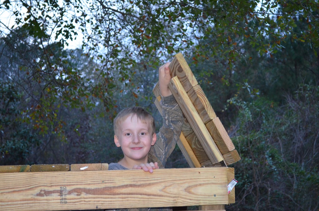We wanted to make a rope bridge from the platform to the “deer stand” but over-cautious mom thinks it would be too dangerous.