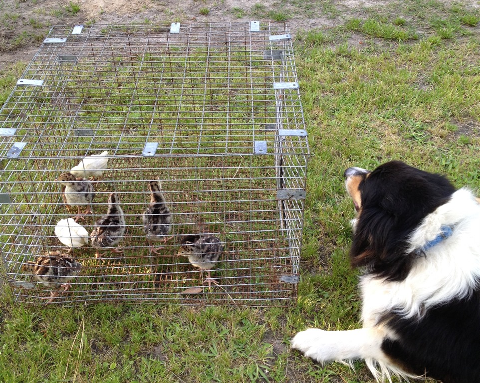I have had the poults about a week now and I can see how much more social they are than the chicks. The chicks rarely pay me any attention but my poults huddle toward me to get a finger scratch through the pen wire and will follow my hand along the side of the pen waiting for me to put a few grass seeds on my fingers so they can peck them off. I put my hands in the cage and they like to huddle down under my hands, popping their heads out to look around every once in a while. They go right to sleep when I hold them on my chest under my hand.