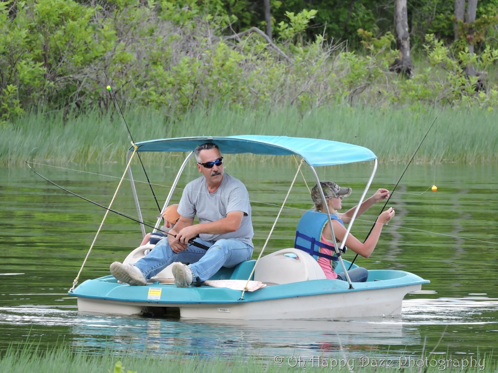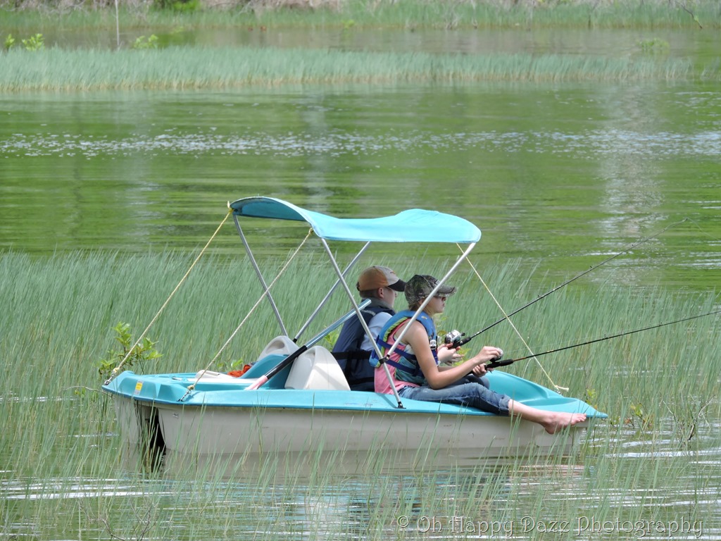 Our youngest two jumped in the paddleboat right away and paddled around the cove, after a bit of a learning curve on how to pilot the boat, they began perch fishing among the grass and lily pads.