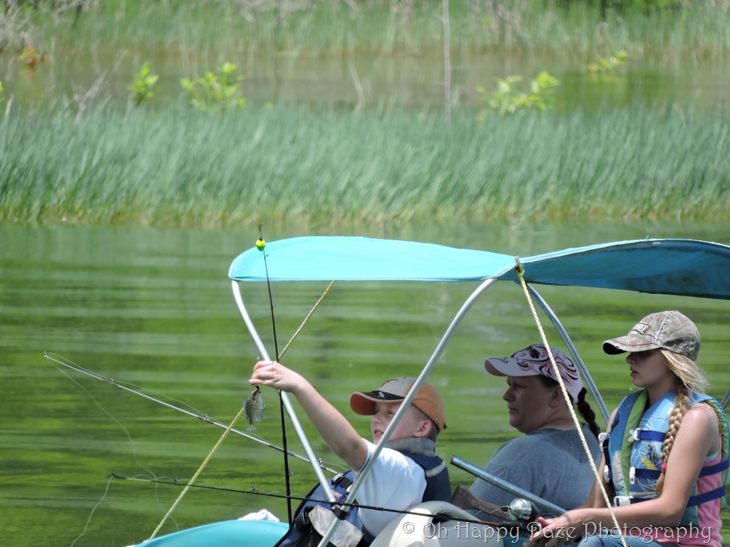 After getting some pictures of the area, Austin was persuaded to go out in the paddleboat and try a little fishing too. He had no problem letting his siblings paddle him around while he scored a nice little perch!