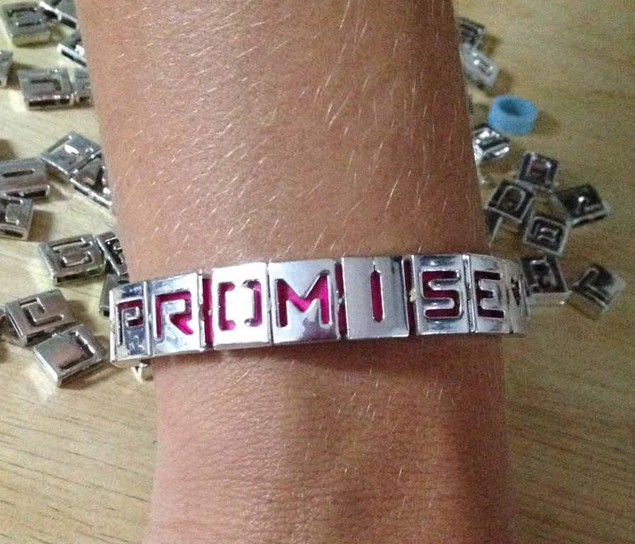 Her concept is great but you can make your own bracelet and your own vow and the bracelet will help you remember that you are to keep your vows, whatever they are!