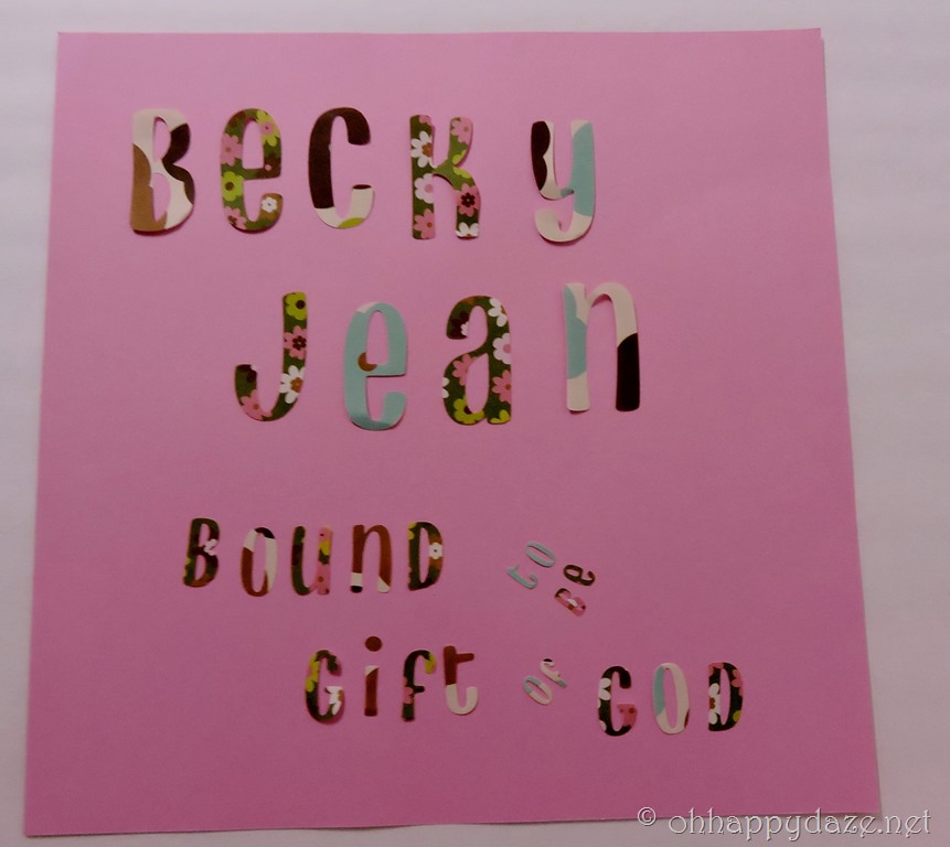 I used my Cricut Machine to make the letters but you can use stickers, hand cut-out letters, or even get creative and use pasta, beans, twigs, just about anything your mind allows!! Be creative and crafty!!