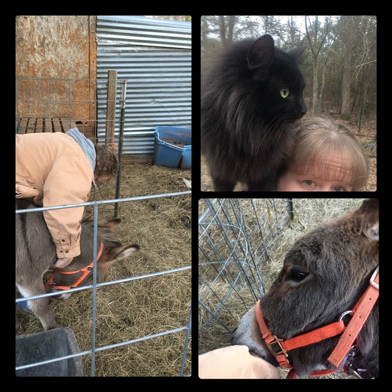 I enjoyed my afternoon wrestling with our donkey, Rowdy, and transporting Catnip around on my shoulder. She apparently thinks I am a pirate and she is a parrot. I always feel better just hanging out in the barnyard with my fur-babies. Some barnyard therapy.