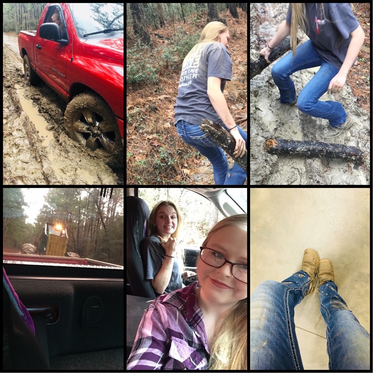 Anna and her Bestie went riding around and ended up getting stuck. The last thing I told her was. “It rained so the roads are muddy, don’t go down any dirt roads.” Of course, she did and got stuck. She was determined to not call me for help (since she disobeyed) but thankfully in a small town, there is always a guy with a truck bound to come by. Sadly, he couldn’t pull her out but was kind enough to go talk to the skitter driver up the road and he pulled her out. She had a blast with her first “mudden’” experience and was pretty proud of herself that she didn’t have to call mom. I wasn’t mad, I am glad it all turned out well. These kids have to live a little and learn small lessons so they can “adult” in the near future.