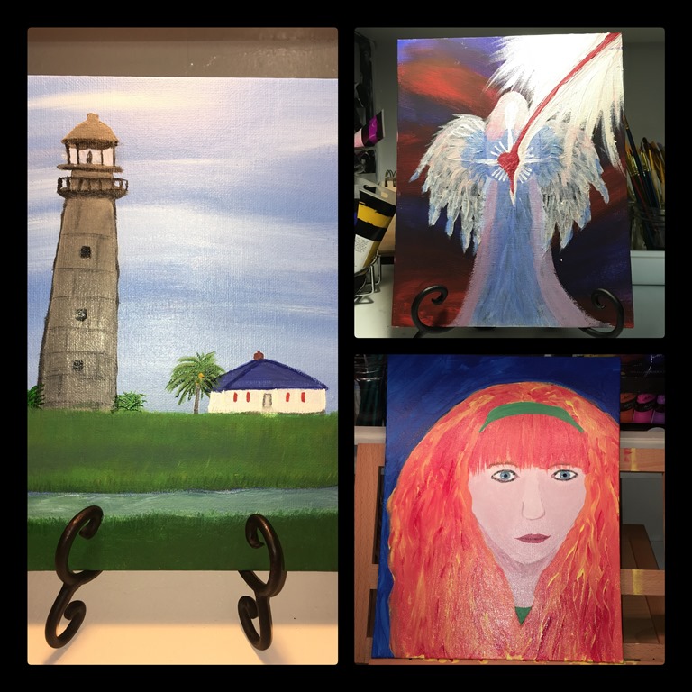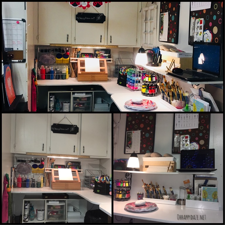 I asked hubby to extend my painting desk space so I could organize my art supplies better. I haven’t been able to paint as much as I would have liked but I have played around with a few things just learning techniques and such.