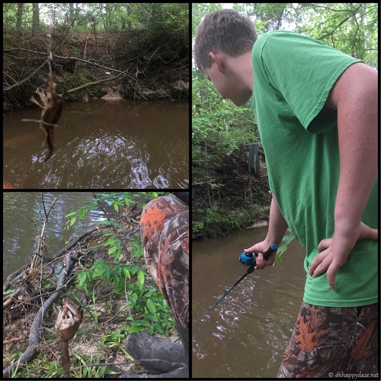 Since the fish wasn’t biting at the park the guys went to the creek and caught crawfish on a hook of all things!