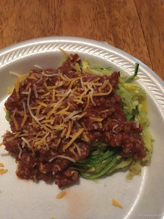 We have been trying to use zucchini as pasta and it just is not working out so great for me. Today we attempted to make “Mexican Spaghetti” with the “zoodles,” Stewart ate it and was ok with it but for me, it had a weird texture and I just couldn’t eat more than a couple bites.